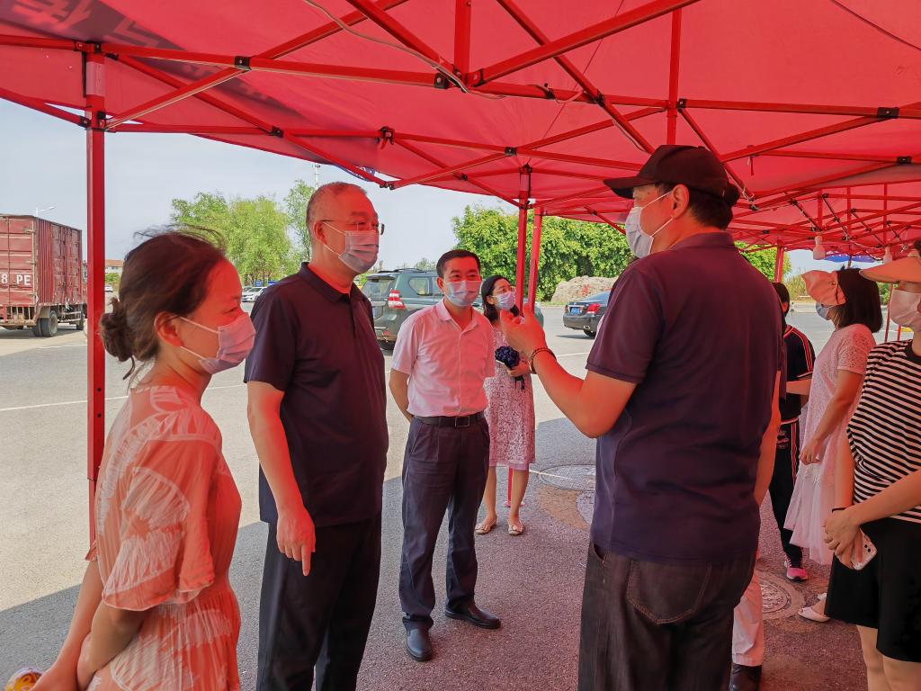 冯董事长一行详细了解公司老生返校、新生报到流程,学院领导班子向校领导们简要汇报了迎新报到、开学准备等工作开展情况,并重点介绍了公司主动服务蔡甸区科创企业的实习就业合作新模式。