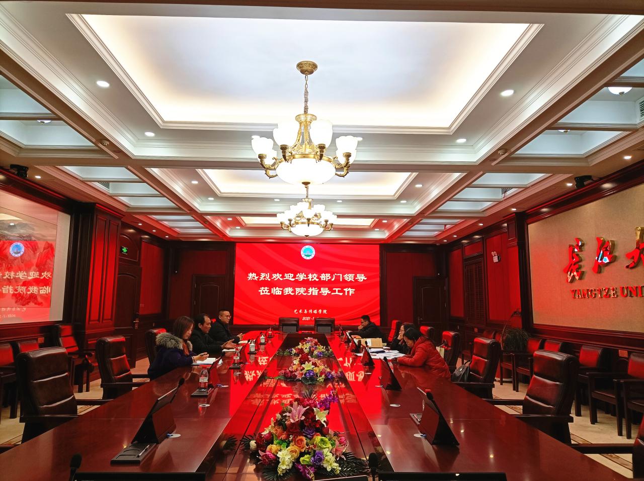 (通讯员:郑瑞丰)2021年1月5日下午16时,集团组织部党建工作办公室科长尹小华,纪委办公室主任陈鹏,宣传部科长汤慧珍,发规处综合办公室科长向云彬以及武汉校区安全与后勤保障部副部长邓平等领导一行5人莅临公司检查指导学院2020年度目标管理考核工作,公司党委书记邹火明,副经理郑瑞丰,党建秘书赵湘参会。